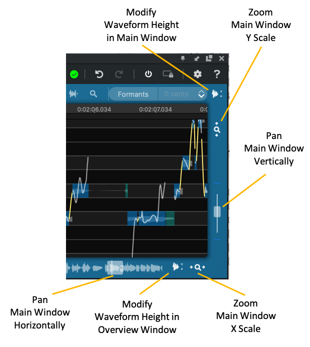 Because audio modification tools have a large number of ways of manipulating the zooming and panning of the signal viewing window, RePitch offers several popular methods for users to choose from.