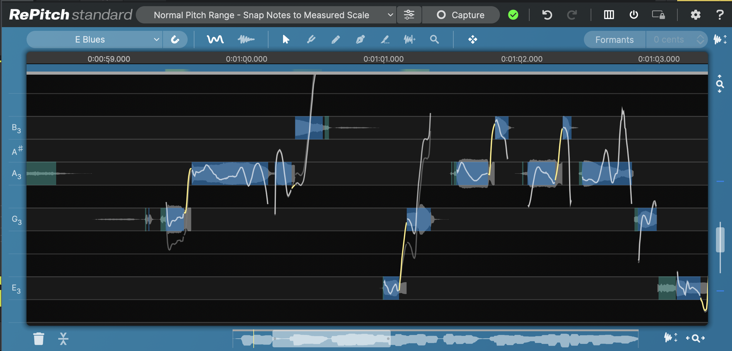 Prior to Capturing our audio, we will select a Scale and a Macro. This way, when we capture our audio, RePitch Elements will immediately apply our desired settings.