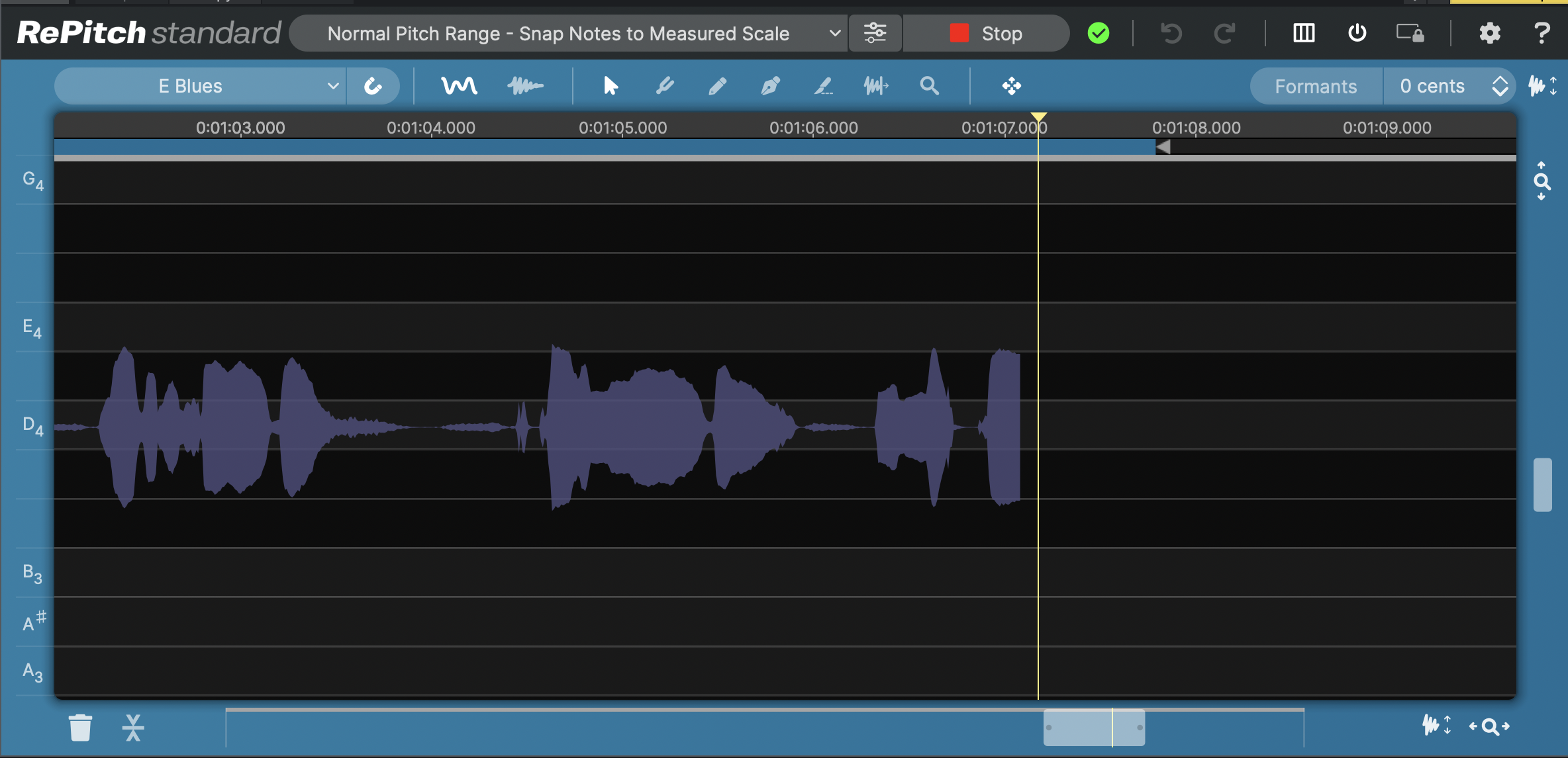 The Capture button will now change to a red square and say 'Stop'. This indicates that RePitch Elements is armed and ready to capture any incoming audio.