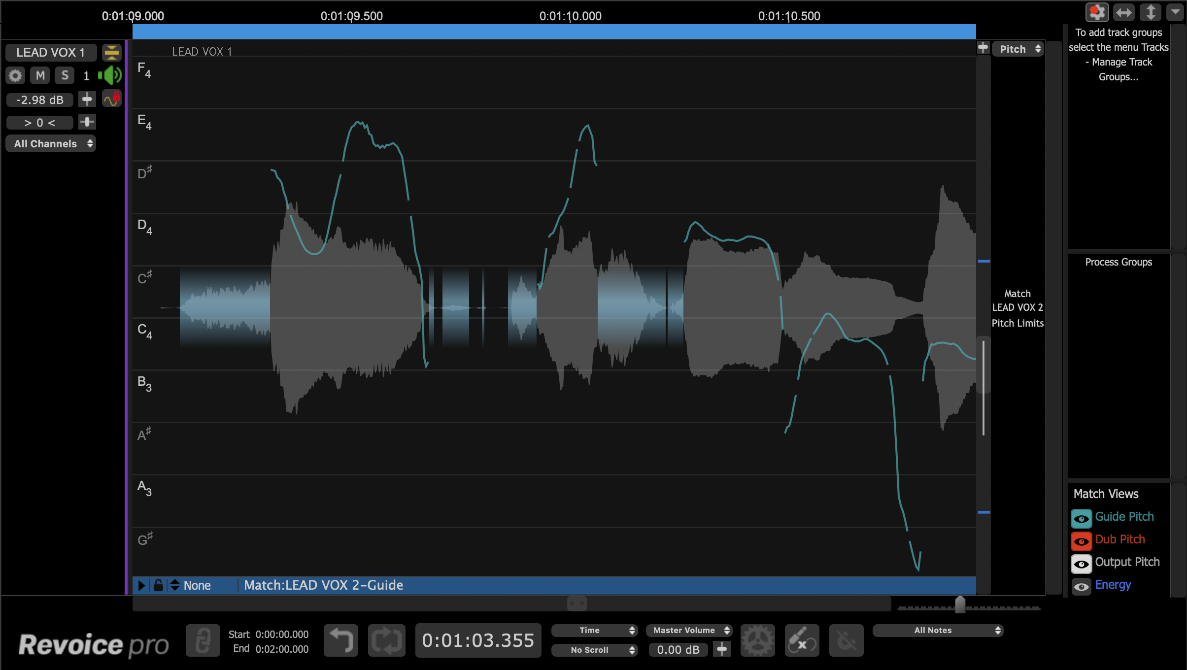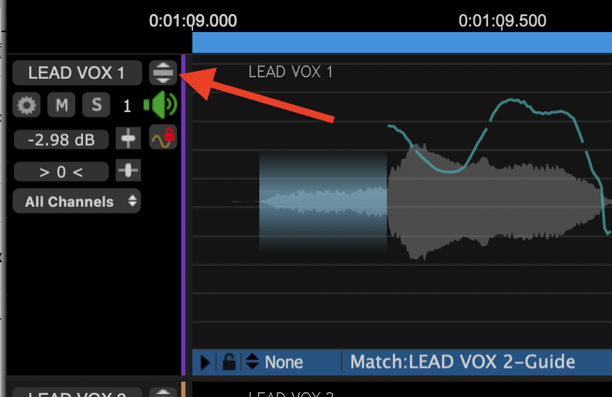 To get increased resolution and display height you can expand the Guide (or Dub) to the full height of the Revoice Pro window by clicking on the "Show/Hide" full height button in the Track Controls to the left of a track.