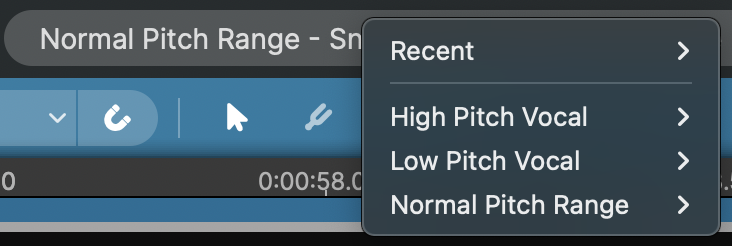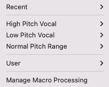 RePitch features a small library of task-orientated Macros (Initial Processing Settings) covering a few common usage scenarios.
