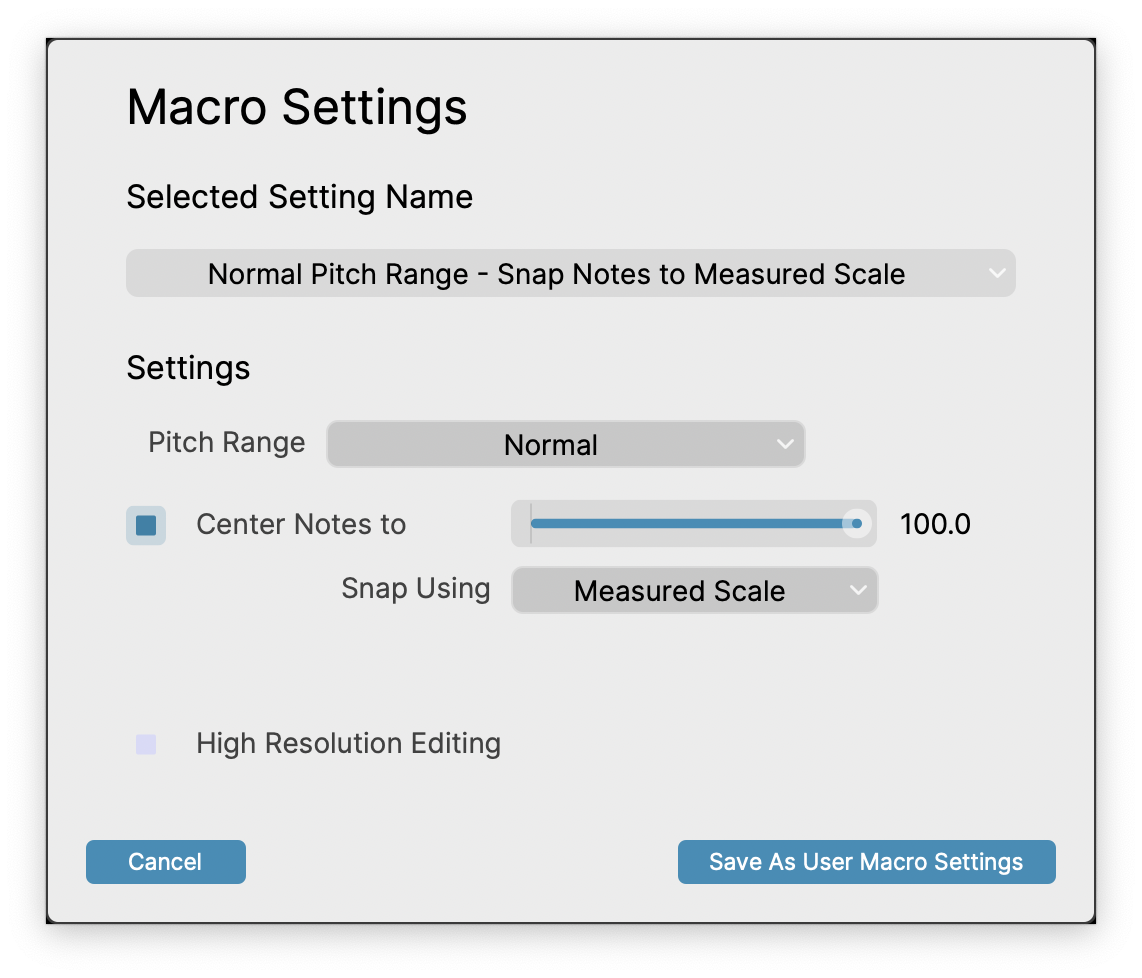 It's often entirely possible to get most of your desired tuning results by applying a Macro when you capture the audio, with relatively little further adjustment required.