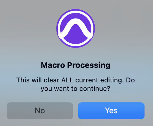 You can click Yes or No. Either way the Macro will be loaded for the next Capture as shown in the picture below, BUT, if you chose Yes, then any manual editing you have done will be removed and you will start editing with the original audio.
