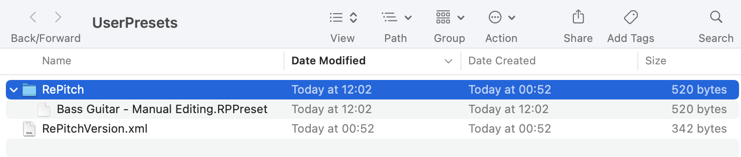 Clicking Manage Macro Processing in the menu above will take you to the RePitch User Macro directory, which in this example will look like this on a mac.