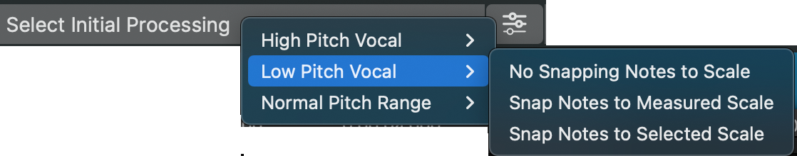 For now, you only need to select the pitch range of the incoming audio, and then you'll be shown a few Processing options such as the 3 shown below.