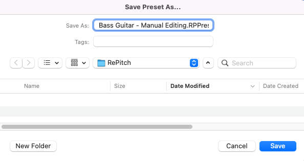 Setting the Pitch range makes RePitch process faster and its editing sound better.