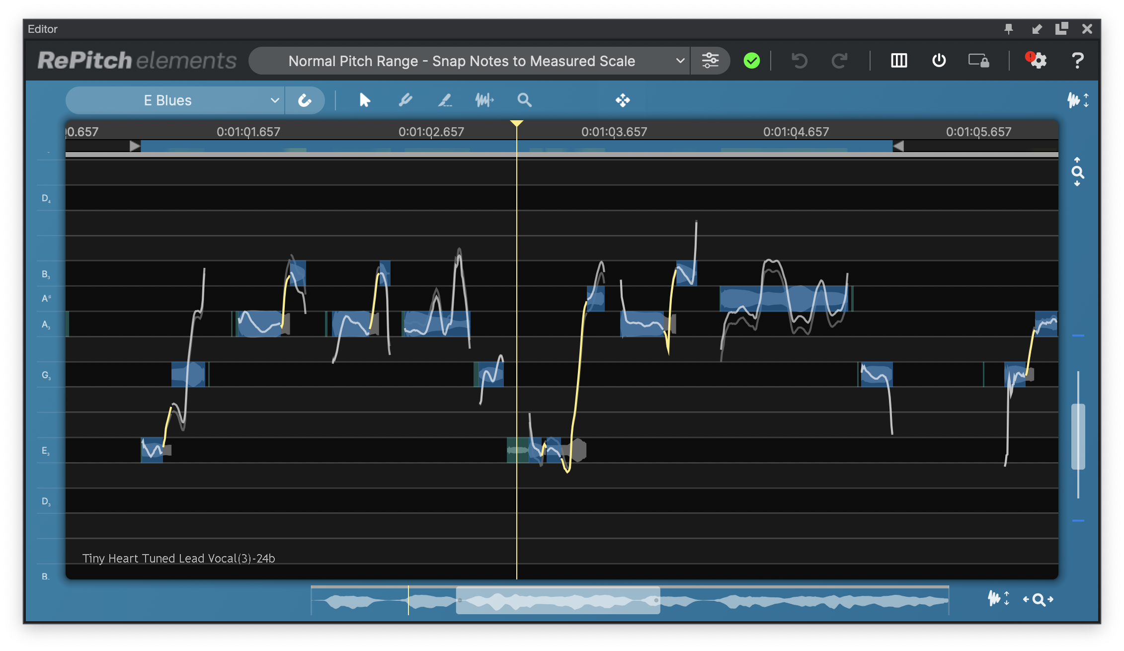 QUICK TIP | If your singer is normally close to being in tune, select "Chromatic" scale and use the Snap Notes to Selected Scale macro to perform a first pass of making slight tuning adjustments. |