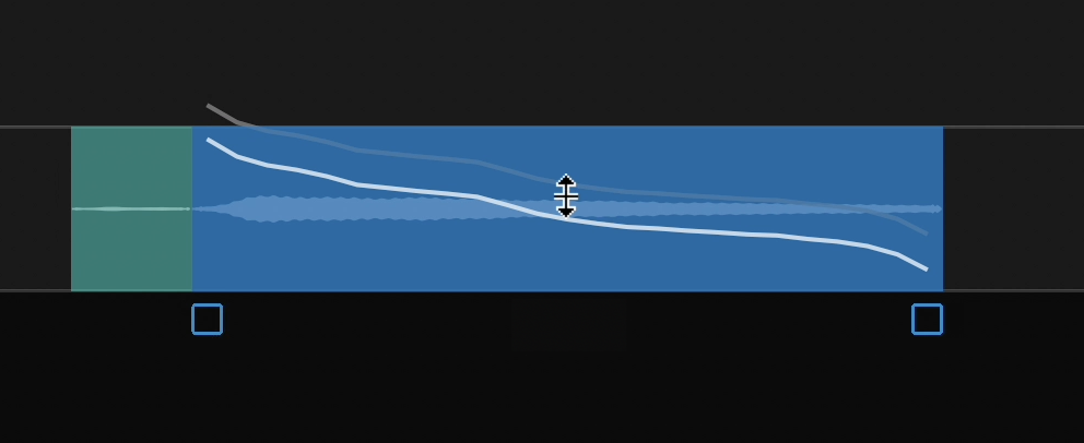 Selecting the transition will show the Level Change control point as described above, and the transition can be dragged up and down to modify it's tuning.