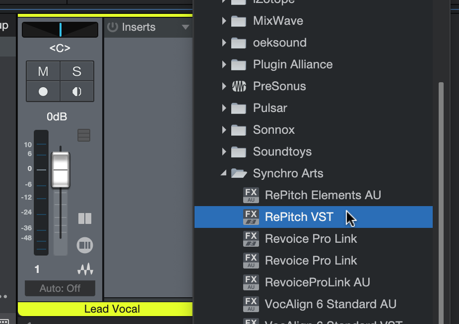 Then select 'RePitch VST' from the menu.