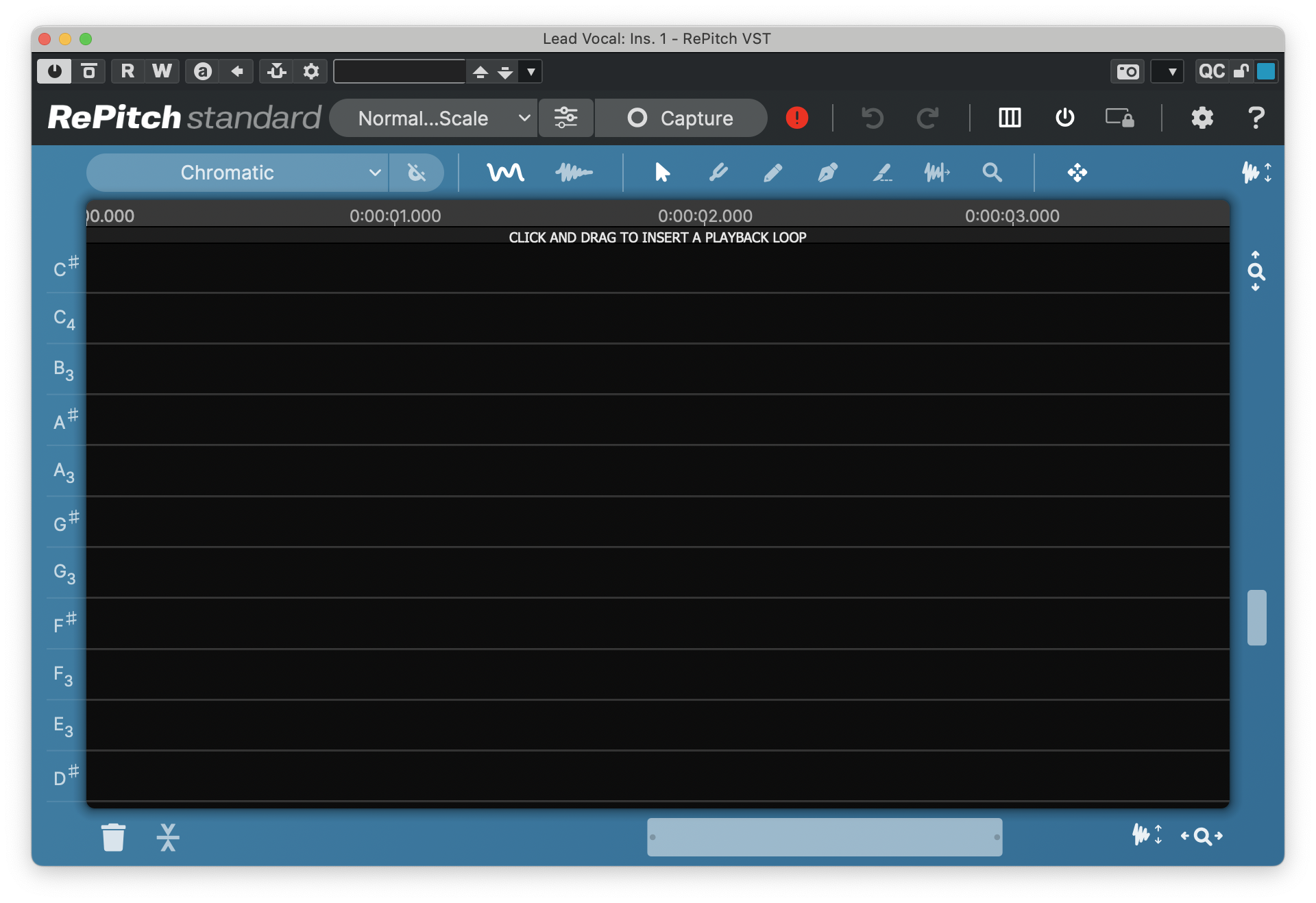 In the real-time versions of RePitch, we need to Capture our audio before we can work with it. Before Capturing your audio, we suggest setting up a loop around the audio that you would like to capture. This will make it easier to capture the audio, and to listen back to the results after processing is applied.