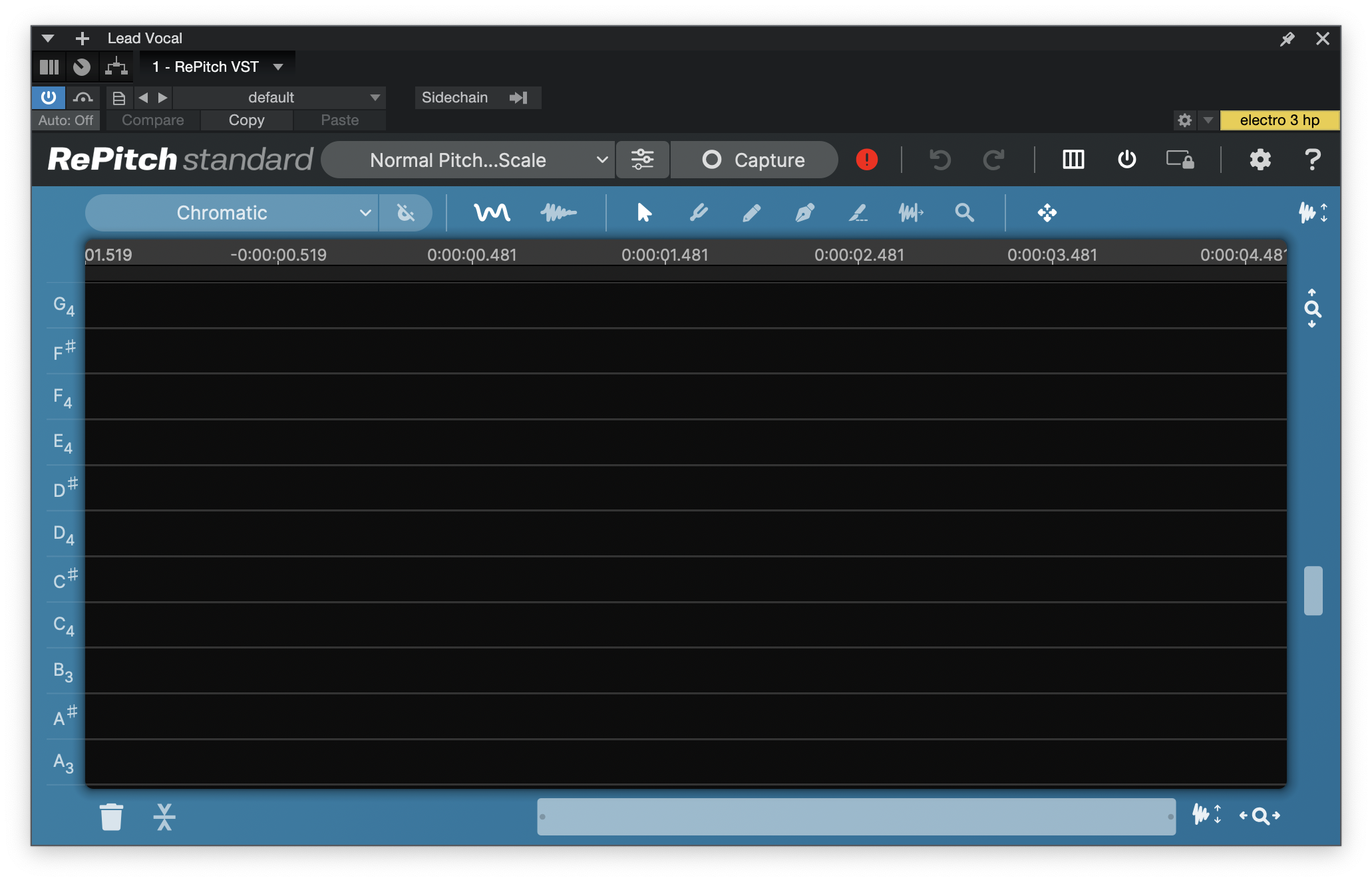First, we will select the Chromatic scale from the Scale menu in RePitch.