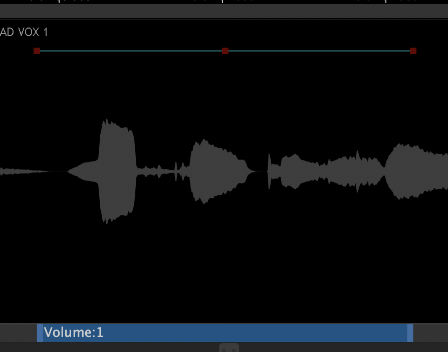 There is a fine teal line at the top of the first track’s waveform. That’s your Volume control – like an automation display.