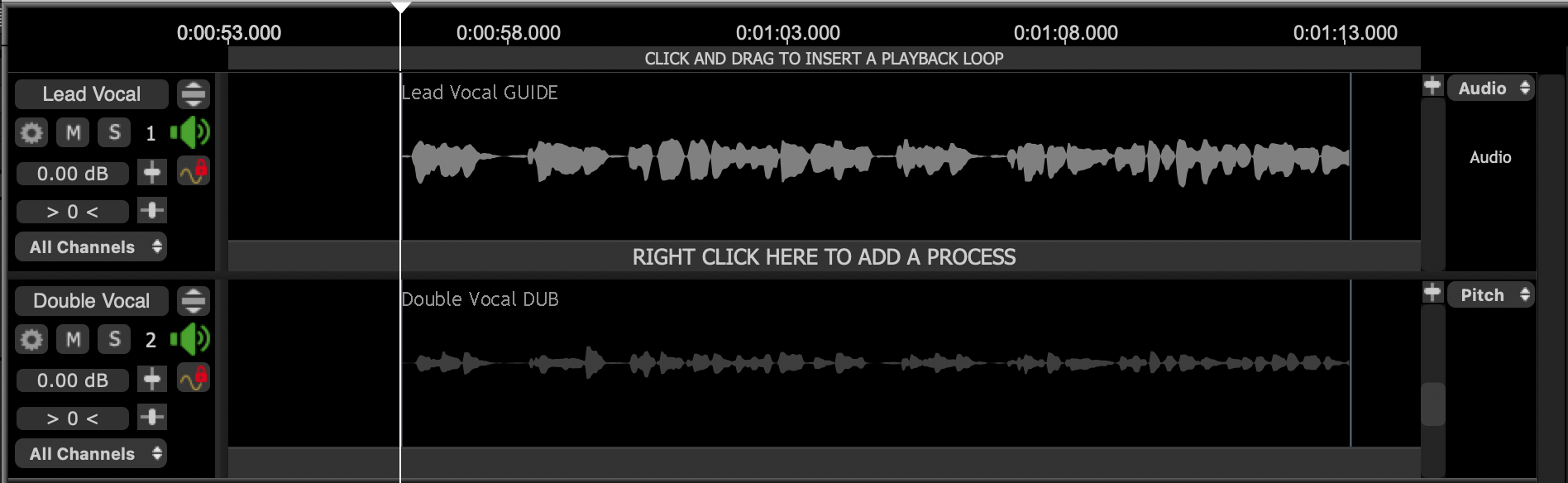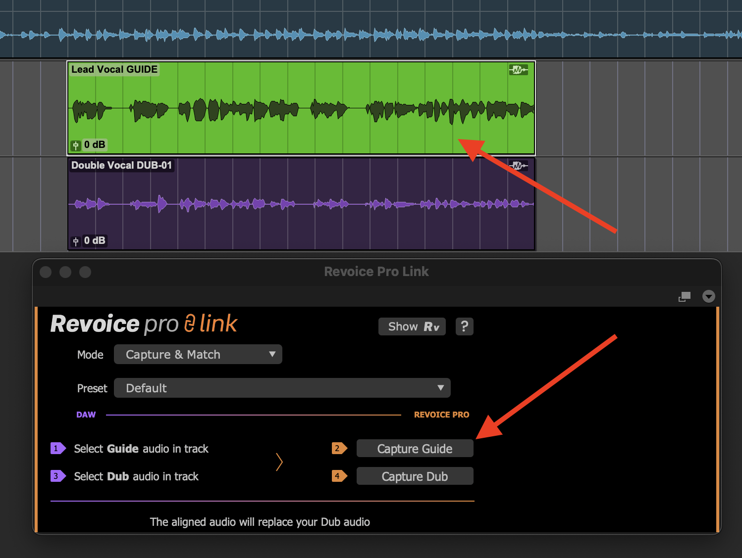 Repeat the same process but select the 'Double Vocal DUB' region in your DAW, and click Capture Dub, just below Capture Guide.