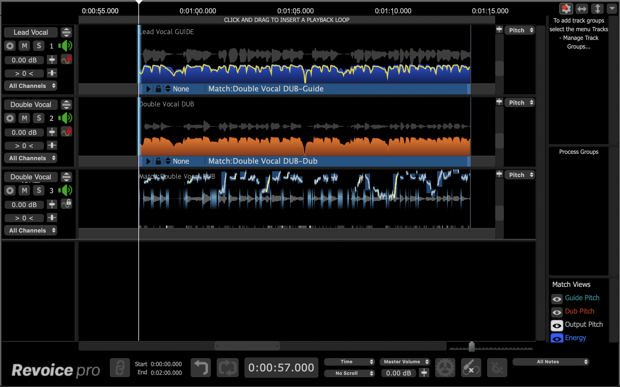 Now in your Revoice project window, you can see the process that has been created as shown below. You can listen back in Revoice or in your DAW to hear the Matched audio.