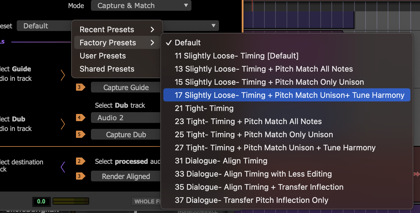 From the Mode drop-down menu, select Capture & Match Timing / Pitch / Level.