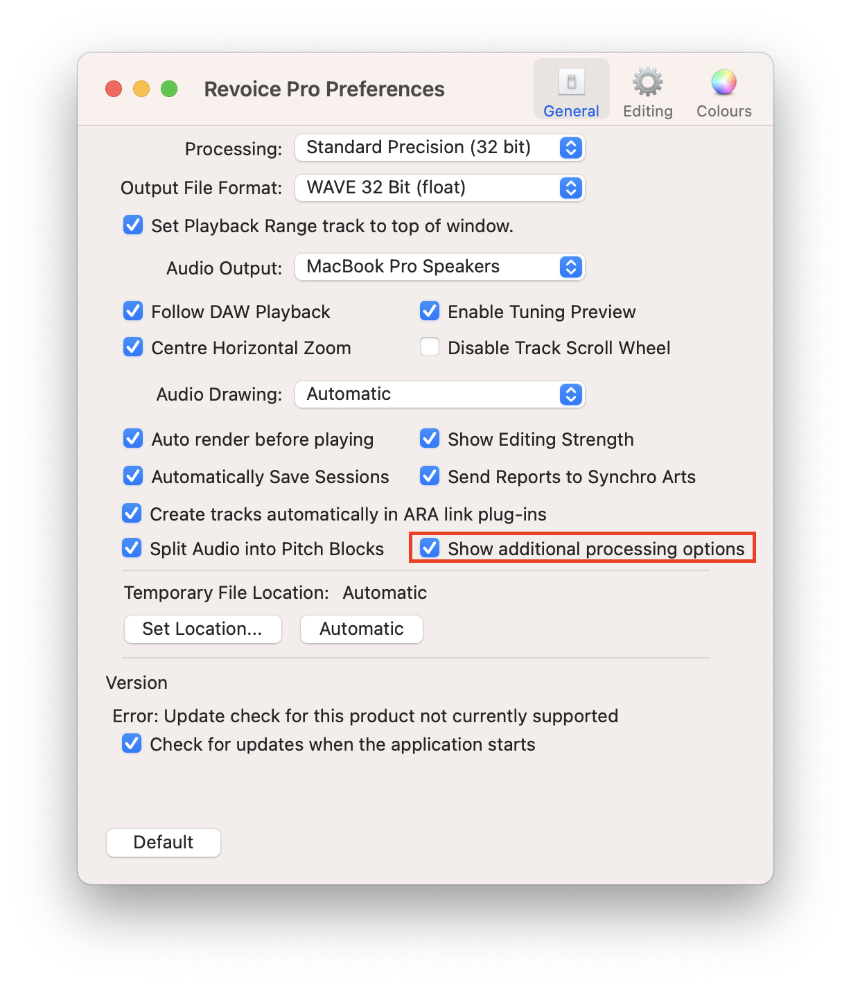 Before we can create a new Analyser Process, we need to make sure that 'Show additional processing options' is selected in the Settings menu.
