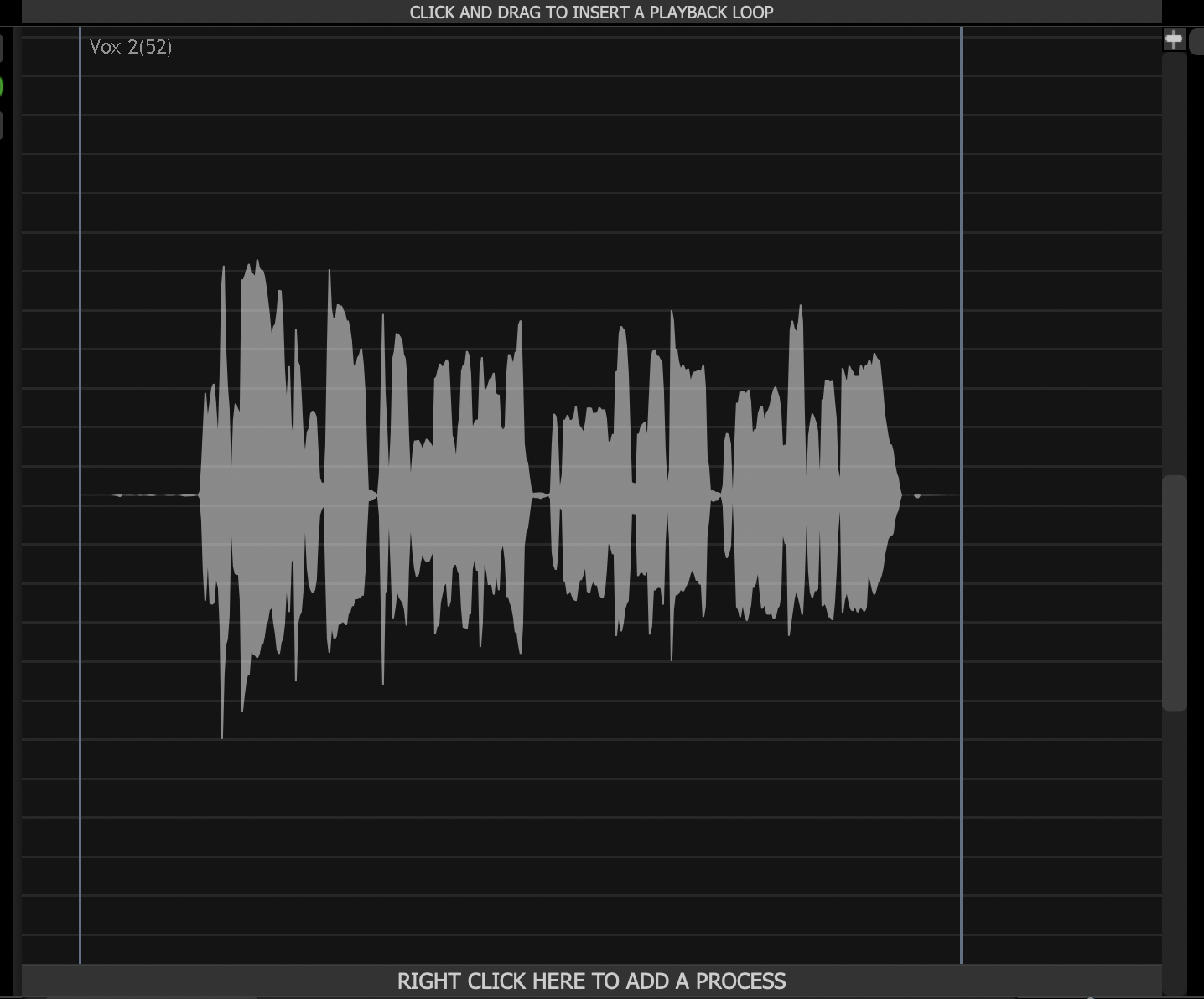 In many cases, the way Revoice Pro works will mean you can bring long audio signals into Revoice Pro and not need to edit the waveforms. You can, in effect, create edits by inserting several Process Control Blocks to start and stop at specific points in each track of the input audio waveforms. This is usually the most effective and efficient way of working.