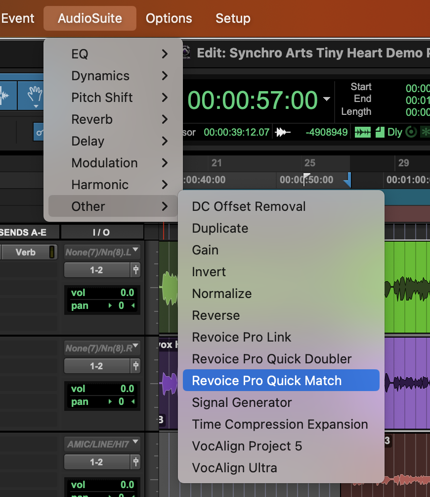 Select Revoice Pro Quick Match (or Doubler) from the PT Audio Suite > Other plug-in menu, shown below.