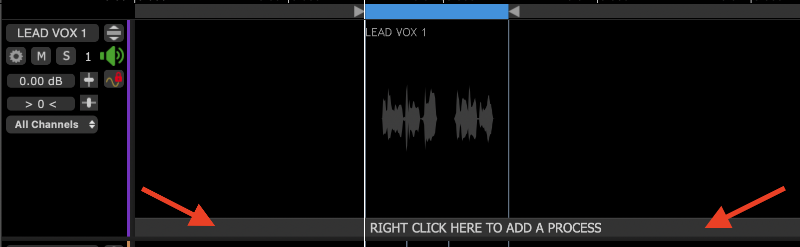 The Process Control Track is a very important element of the Revoice Pro user interface. This horizontal track, located at the bottom of each audio track in Revoice Pro, is used to indicate: