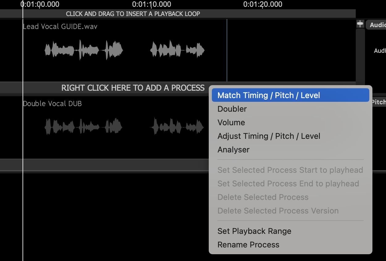 Next, right click in the Process Control track and select Match Timing / Pitch / Level. This will open the New Process Window.