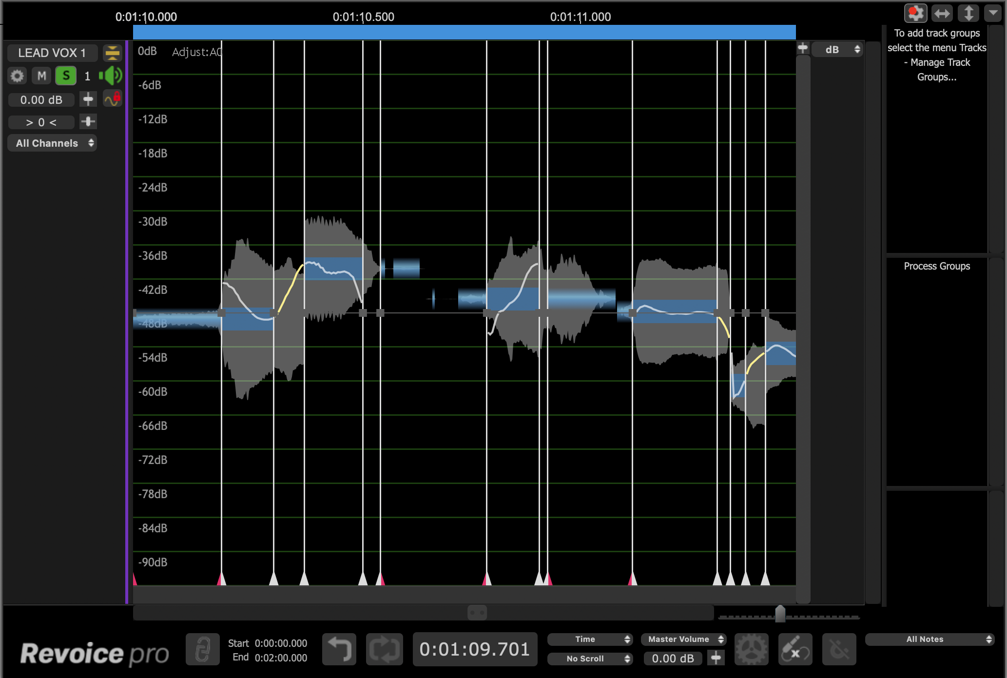 The Warp Point Tool provides a quick way to drop anchor and flex points, with visible lines showing their location in the signal.