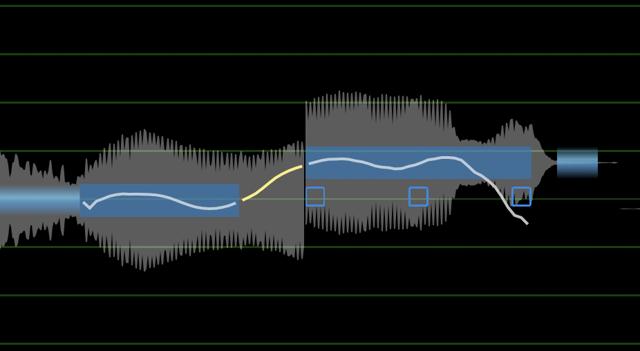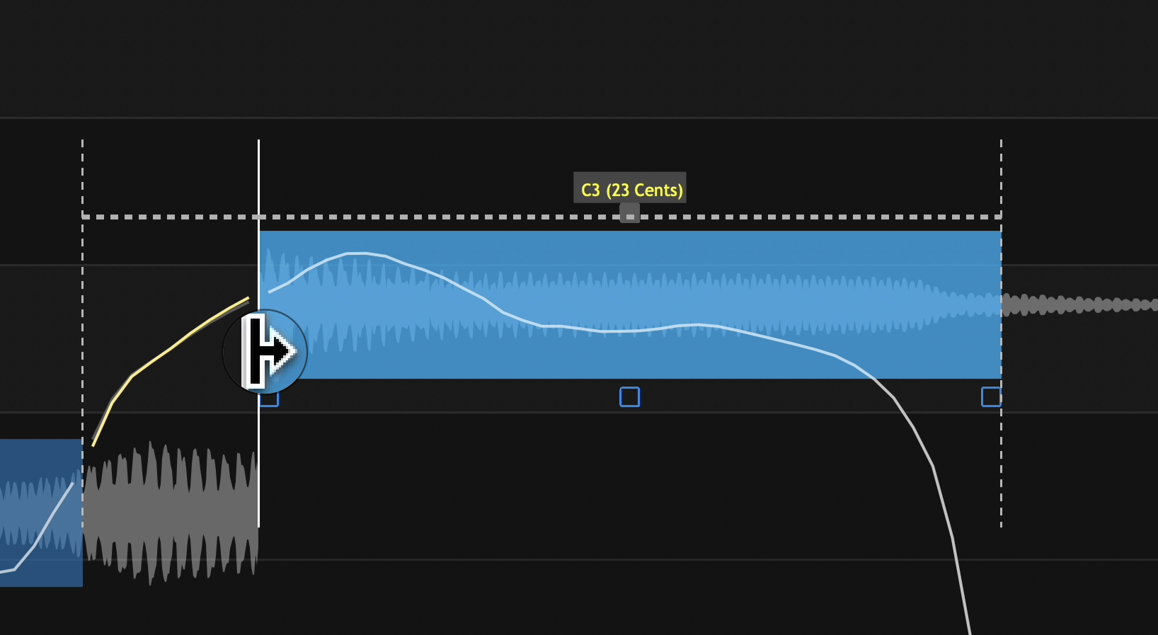 Warp points are automatically populated at the beginning and end of each note block, and are used to power the Note Block time modification tools discussed above. If you add or remove warp points with the warp point tool, they will be taken into account when using the Note Block time modification tools.