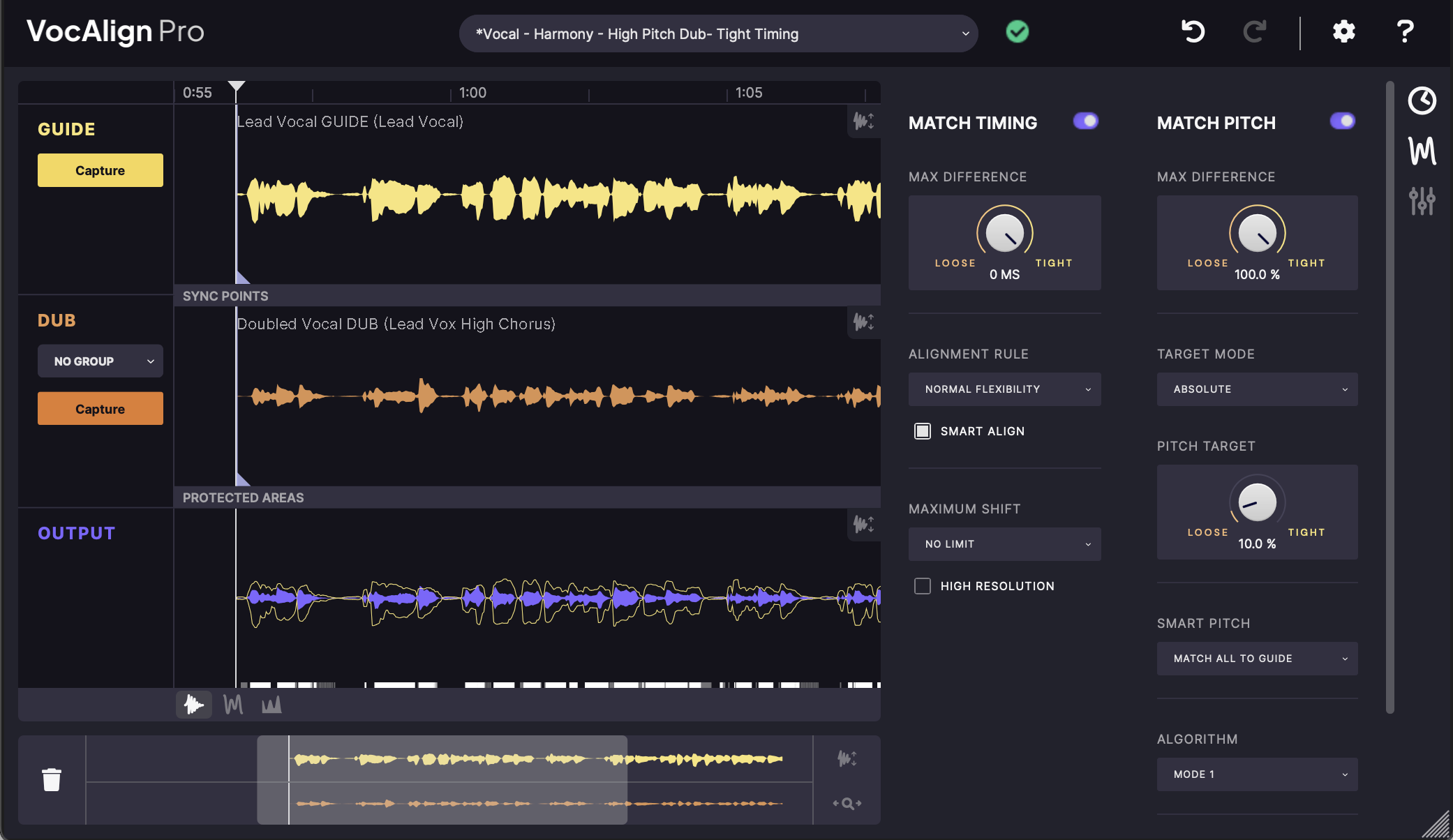 A task-orientated library of presets covers a broad array of common usage scenarios, and often, you won’t need to do anything more than Select a preset, to get the job done. However, you can always adjust the Match Timing and Match Pitch "tightness" controls to get a tighter or looser sounding result.