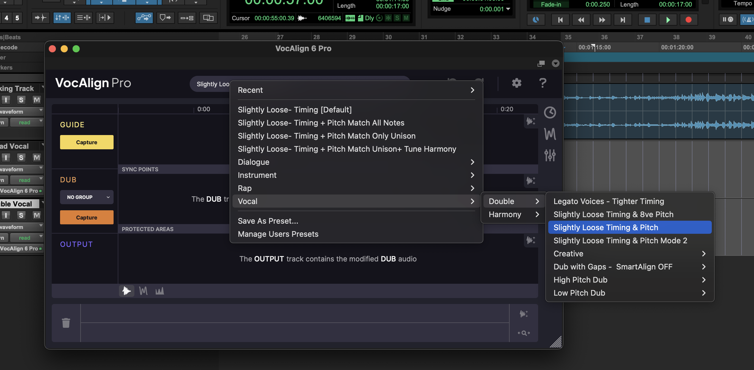 • If there is a Guide already captured, as soon as a Dub is captured, VocAlign 6 Pro automatically processes the Dub with the selected preset and creates a new Output.