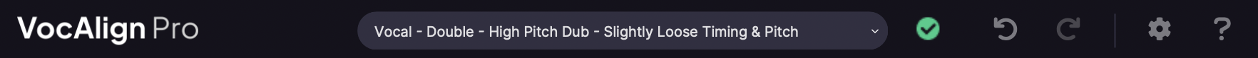 NOTE: Immediately after starting VocAlign 6 Pro, when the screens are empty, if you select a preset before capturing the first Guide and first Dub, you won’t be able to adjust any of VocAlign 6 Pro’s controls until a Guide and Dub have been captured. However, the selected preset will be applied automatically as soon as the Dub is captured.