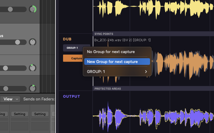 Now that Group 1 is selected for the next capture, you can select the dub(s) you want to add to the group in your DAW and then click the 'Capture' button under the drop down menu in the VocAlign interface.