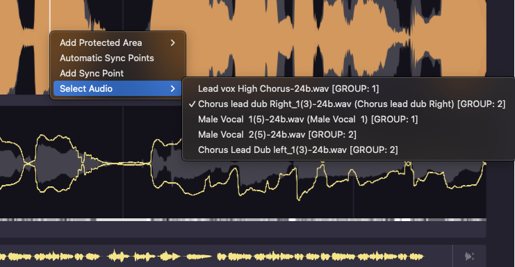 The Process Groups feature in VocAlign 6 Pro enables you to capture multiple dubs into a group so that it's possible to make alignment changes using the VocAlign interface that are applied to all the dubs in that group.