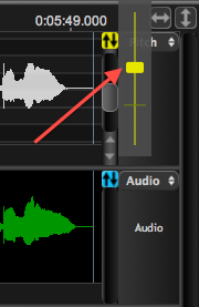 In the image below, we show the main elements that appear in the APT Output track. In the picture below, we show the Revoice Pro window as it would look after the "Show/Hide Full Height" button (at left) has been LEFT CLICKed in the multitrack display. This gives extra room for adjustments.