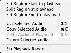 If the user has positioned the Playhead at a useful point before bringing up this window, then the three (self-describing) menu options can be used either to shift the selected waveform's start or end, or split it into regions.