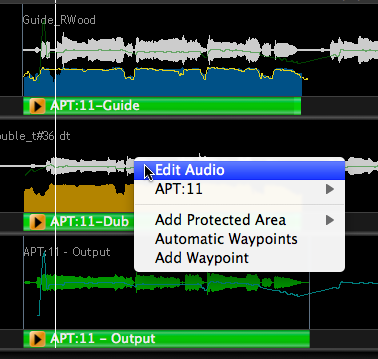 If an APT or Doubler Process uses the selected audio waveform, the menu will have two additional options at the top, as shown right (for Mac OS).