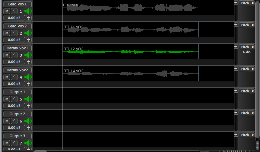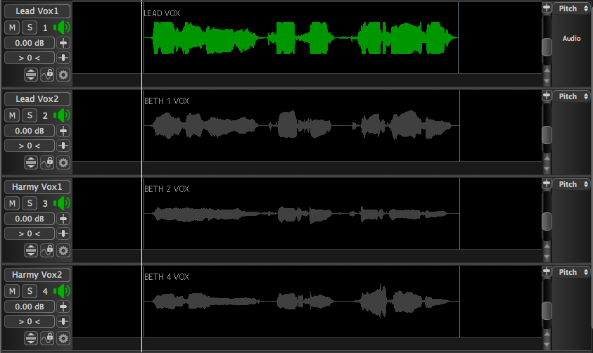 Example Session - 2 lead vocal tracks and 2 harmony vocal tracks