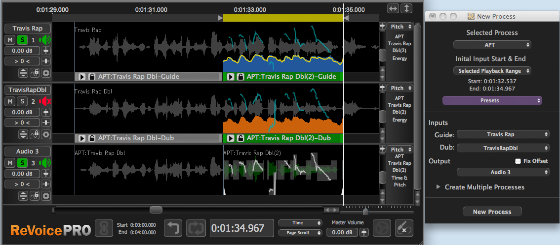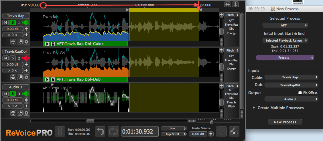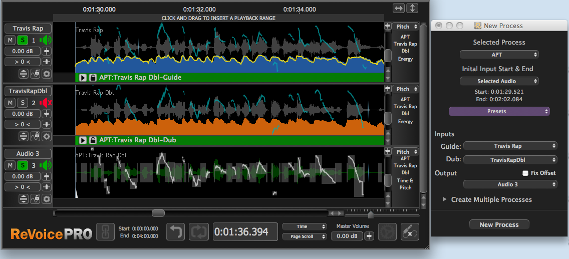 - Prepare Guide tracks in Revoice Pro - The pitch and timing of the Guide (and Dub) input signals to an APT process can be manually adjusted in Revoice Pro before being used in APT functions.