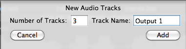 We will create 3 Output tracks for 3 APT functions by LEFT CLICKing the Tracks menu and selecting Add Tracks... (or use shortcut keys).