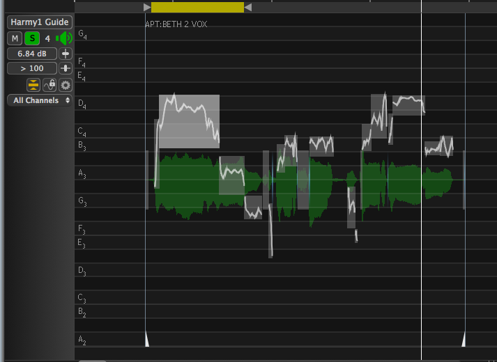 Note that when dealing with a Harmony part, we do not want to apply the pitch of the Lead Guide to it because it would make the pitch the same as the lead. Instead, we can create a Timing- corrected Harmony to become a "Guide" Harmony part with the timing of the Lead Guide.