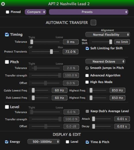 - The APT process now offers a nearest semitone option for pitch transfer, and a 'normal flexibility plus pitch' option for aligning material that has a limited dynamic range, where energy alone does not provide an adequate guide.