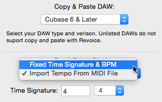 You can switch between the fixed tempo map and the one from the imported MIDI file using the Bar & Beat Display drop-down in the Settings window, as shown below.