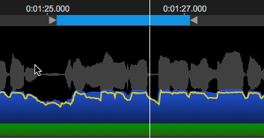 The ends of the resulting Playback Range block can be trimmed by placing the cursor on the triangles at either end, hold down the Left Mouse button to get the extended blue end markers as shown in the first image above. Drag the selected start or end of the Playback Range to the desired location(s).