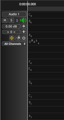 So as you can see to the right, when a track is expanded and the pitch grid is visible it shows only notes of the selected scale, in this case A harmonic minor. In modes that allow the manual editing of pitch, such as Warp and APT, individual notes can be dragged to the pitches on this grid so that they are automatically tuned to the scale and temperament concerned.