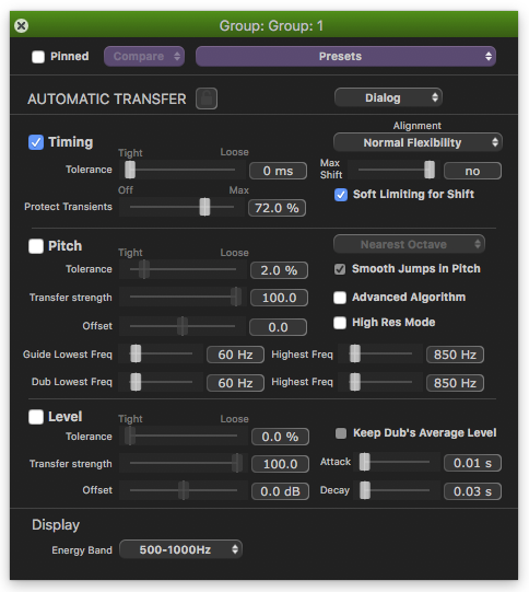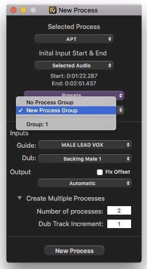 Changing the setting or the preset for one process in the group updates the settings for all processes in the group.