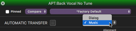 Revoice Pro 4 has introduced a new Music mode for APT pitch processing that has time constants and features optimised for the characteristics of musical signals. The mode is selected in the APT Process Control Panel.