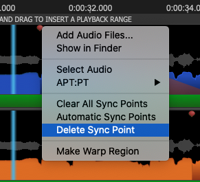 Drag Sync Point dots of a related pair, in either Guide or Dub, to move them in time, to points where you want the two tracks to align precisely.