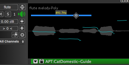 In this example with a flute as a Guide track, we have started with a Guide High Frequency pitch measurement limit set to 600 Hz as shown in the Processing section of the APT Control Panel below. This means the Guide pitch measurements stop at 600 Hz and will not find or display notes above this frequency.