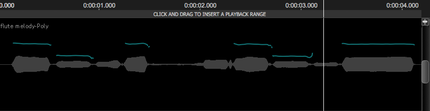 Consequently, this example's pitch display does not yet show any pitches correctly above 600 Hz and, as a result, there are audible errors in the output.