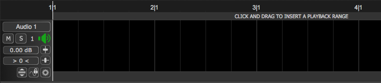 Enter the time at which you want the bars and beats count to begin, either in the SMPTE or Real Time box under DAW Time Offset, and press Return or Tab. This should normally match the start time of the related audio. Enter the number of Beats Per Minute in the BPM box. Select Fixed Time Signature & BPM in the Bars and Beats Display drop-down at the bottom, and choose a Time Signature to match your music. Close the Settings window, and you should now see a fine grid on the audio track, with bar/beat numbers along the top edge, as shown below. The bar lines are shown stronger than the beats.