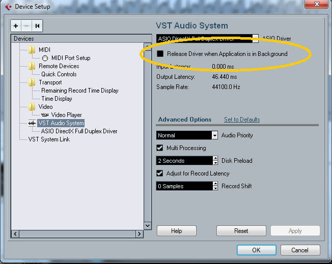 If this option is checked when you try and start playing from Revoice Pro the operation will fail because Cubase is in the background.