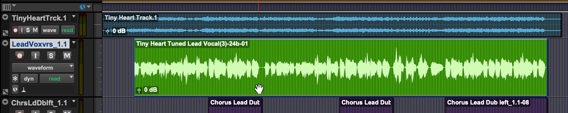 - In Pro Tools, you can now play any of the tracks in the Session against the 'Tiny Heart Tuned Lead Vocal' track to get an idea of what the parts sound like and what needs to be done to them. We will only be using a couple of these tracks to get you started. Also, note that this first example is around 2.5 minutes of audio. We will later show that selecting smaller sections will process more quickly and can sometimes be more appropriate. This will be discussed later.